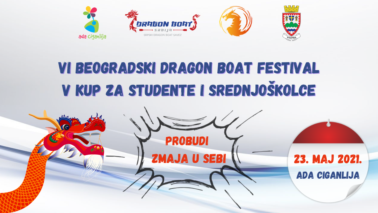Српски Драгон Боат савез и Београдски Драгон Боат савез организују у недељу, 23. маја, са почетком у 10.00 часова на Ади Циганлији код ресторана “Green Mill Family” (макишка страна) сада већ традиционалну манифестацију VI Београдски драгон боат фестивал. У оквиру овог фестивала, под геслом “Пробуди змаја у себи” одржаће се и V Драгон Боат Куп за студенте и V Драгон Боат Куп за средњошколце.
